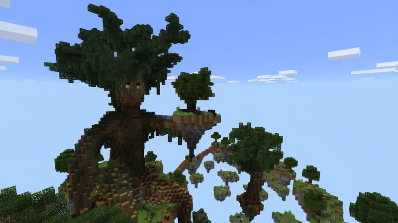 This map is excellent for player-versus-player combat, serving as an arena. It boasts an impressive design, centered around a massive tree resembling a human figure with wild hair. This colossal tree is encircled by a network of interconnected skyblock islands. There are no predefined rules or instructions; you are encouraged to create your own as you play and enjoy the experience.