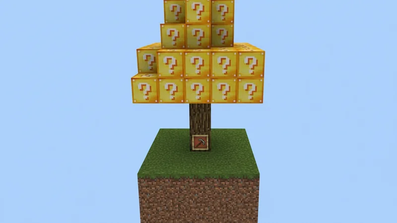 This survival map shares many similarities with other SkyBlock maps, but it also introduces random events that can either simplify or greatly complicate the game. Your experience will largely depend on your luck! The map features four distinct islands, all suspended in a void. These include the standard Main Island, a Desert Island, a Stronghold Island, and a Lucky Island.