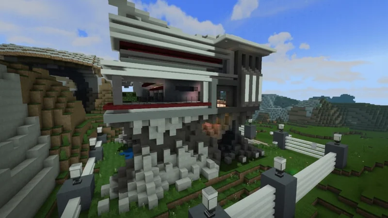 Ever wished for a cliffside home complete with advanced redstone and command block automation? Your search ends here with this house, packed with innovative command block and redstone mechanisms, including a functional car. This compact residence offers a Working Car, a Working Garage Door, a Secret Piston Door, a Working Camera, and numerous other features to uncover. You can enjoy this modern house in survival mode as your personal dwelling.