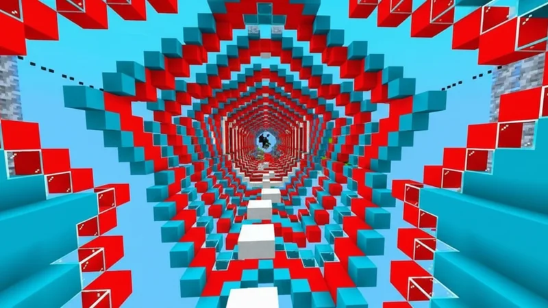 Experience a unique parkour course featuring an unusual atmosphere, reminiscent of free-fall scenarios with special effects and visual trickery. The horizontal path of this parkour is entirely completable, with all jumps being achievable. It progresses from initial easy stages to final intermediate levels, with no difficult sections present. This design ensures that all players can successfully complete the course without encountering significant challenges.