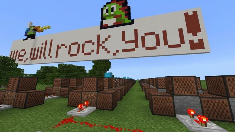 This map endeavors to reproduce Queen's "We Will Rock You" within the Minecraft game environment. Given its widespread recognition, you will likely identify the tune. While not an exact auditory match due to the inherent limitations of standard Minecraft sounds, the rhythmic patterns bear a clear resemblance to the original.nnAuthor: CoalsGuide